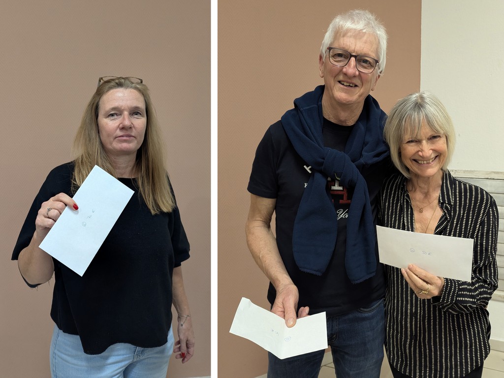 À l’issue des 24 donnes, on retrouve Guy-Pierre sur la 1ère marche du podium. Il est suivi par Gérard B. qui a réussi une dernière table de folie (1014 pts). Fabrice complète ce podium très masculin. Mention spéciale à Edwige et Jéjé que le tirage au sort a permis de récompenser.
