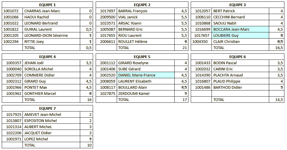 Suite à la séance du soir, les triplettes de Jean-Marc B, Guy (+ Laurent Riou) ainsi que celle de Marie-France (+ Alain Boullard et Kamel Zerdoumi) ont réussi à se qualifier grâce à une bonne régularité tant en attaque qu’en défense.