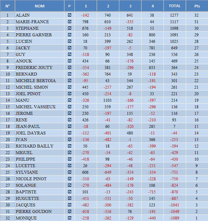 | Pierre Goudon | 43ème | -762 | Stéphane | 14ème | 907 | |