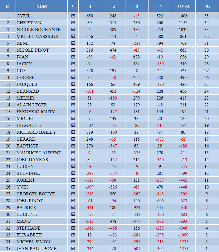 En effet, tout comme le mois dernier, Cyril finit ce 4ème challenge de la saison largement en tête avec plus de 1400 pts.