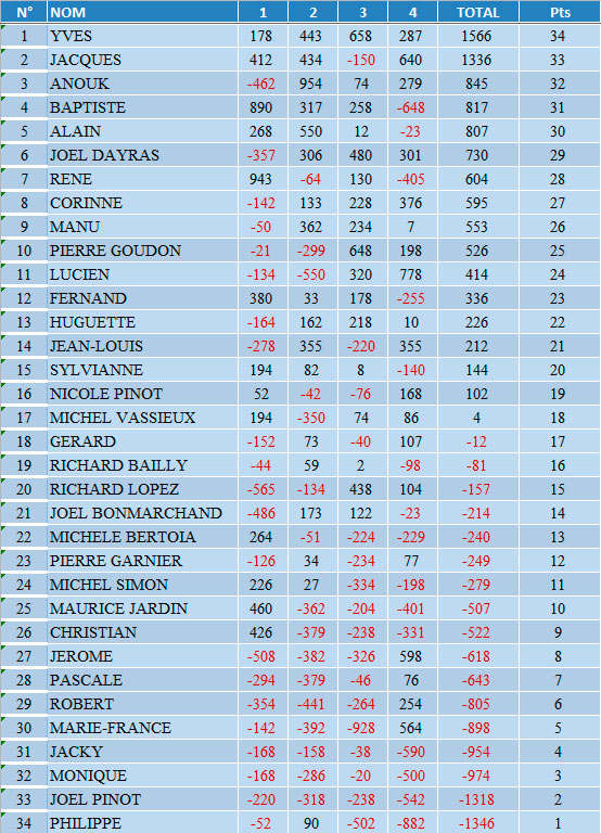 Pour la première fois de l’année, les dames se sont montrées galantes et c’est Yves Marquant qui, à l’issue des 24 donnes de la soirée a franchi la ligne d’arrivée avec une avance confortable.