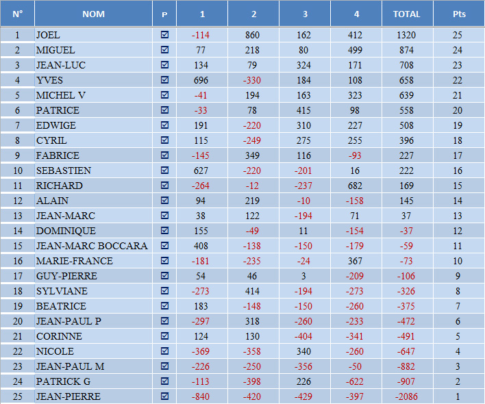 Sur le podium de la soirée, on retrouve Joël (mais quelle surprise !), Miguel qui, cette année, a bien l’intention de figurer dans le “Top 10” et Jean-Luc qui faisait les comptes pour la 1ère fois, et ça lui a réussi !
